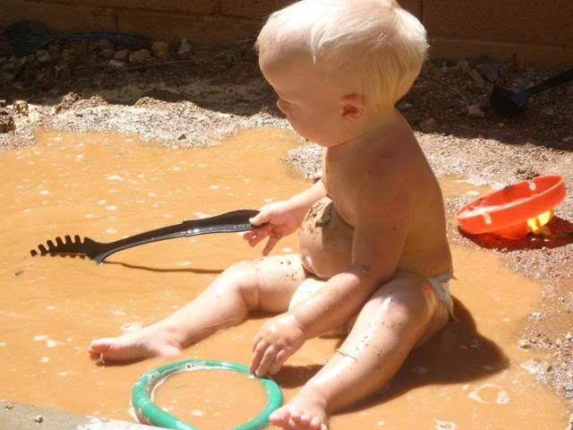 Yummy! That looks like way more fun than a boring clean pool!!He is the cutest!